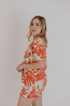 Button Up Pyjama Set Orange Floral