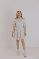 Puff Sleeve Dress Beige Gingham