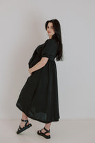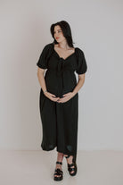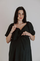 One of our best-loved styles, now available in four stunning colors. This versatile dress can be tied at the front or the back, giving you two different looks in one. Crafted from the same lightweight fabric as our frill jumpsuit, it’s designed to flatter your bump while also offering discreet breastfeeding access. Perfect as a baby shower dress, for summer outings, or as a timeless piece you’ll reach for again and again.
