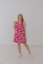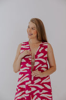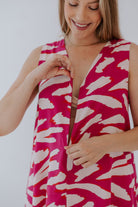 Meet The Valentine A-line dress, a versatile piece that you'll want to wear to any occasion or to help elevate the everyday look. Designed for every stage of motherhood. This mini is both breastfeeding and bump-friendly. The invisible zip in front allows for easy breastfeeding access. The relaxed A-Line shape provides ample room for a growing baby bump. This mini-length dress boasts a flattering V-neckline and an easy-fitting silhouette. This pink pattern adds a fresh, summery vibe to your wardrobe.